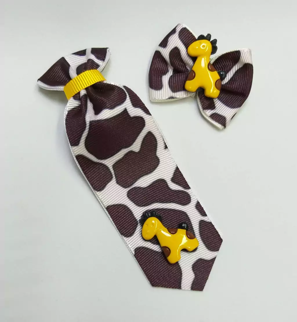 Fita estampada de marrom e branco sobreposta à fita off White.