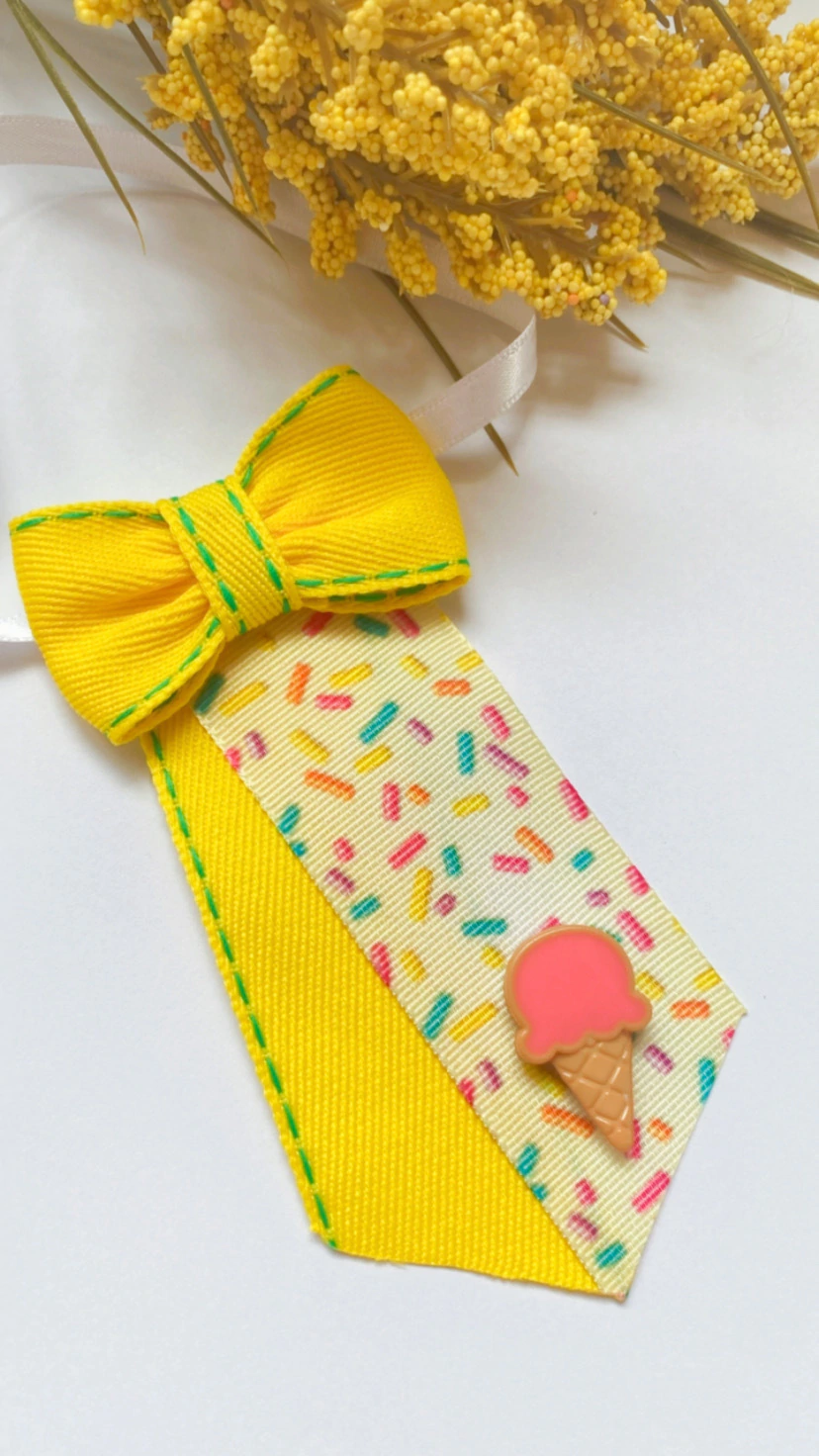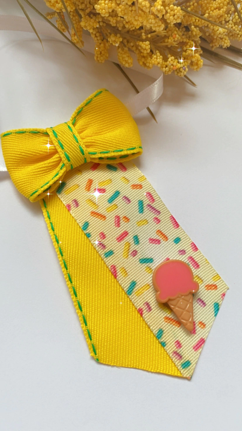 - Laço em fita amarela e com granulado.