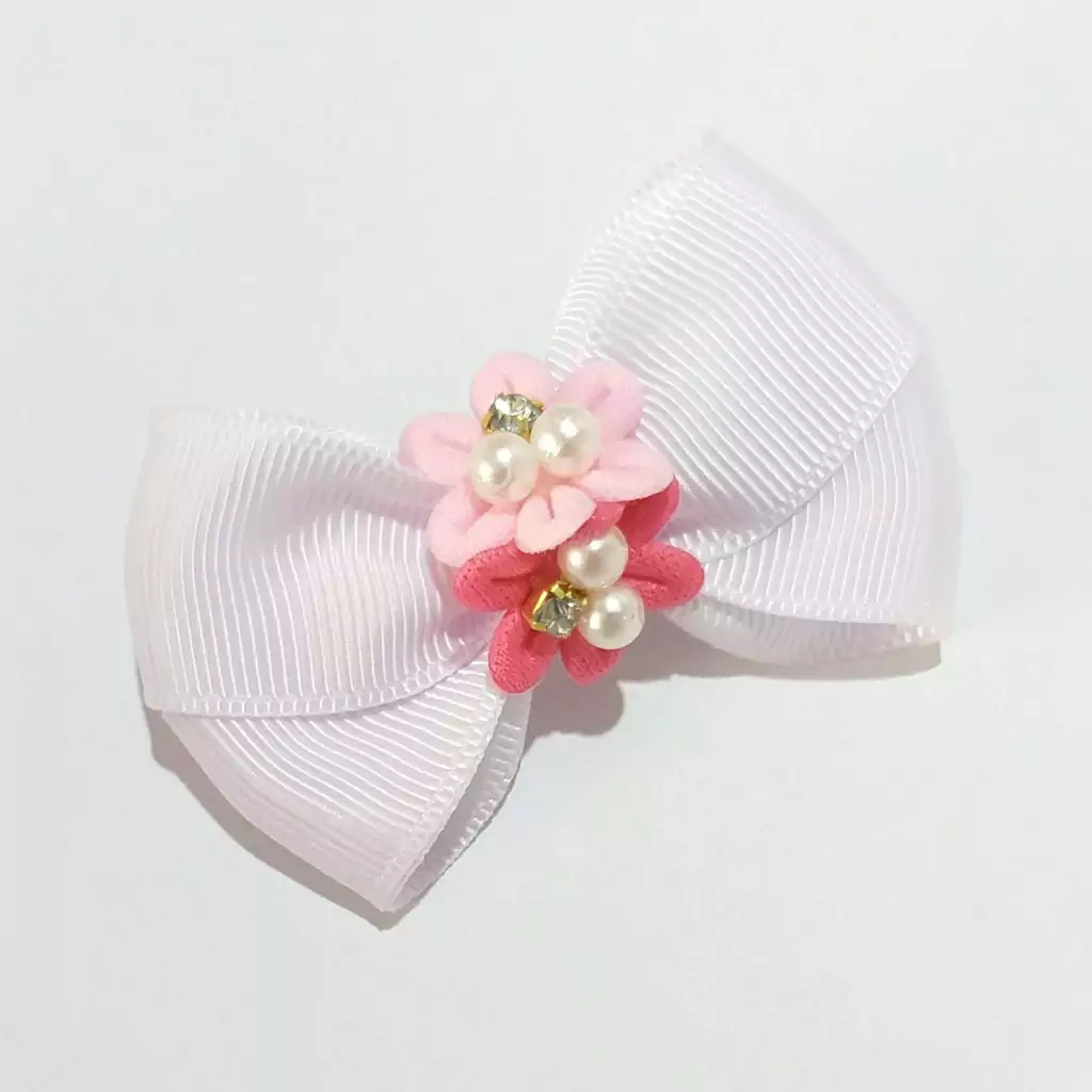 Laço em fita dupla gorgurão branco, modelo cruzado.