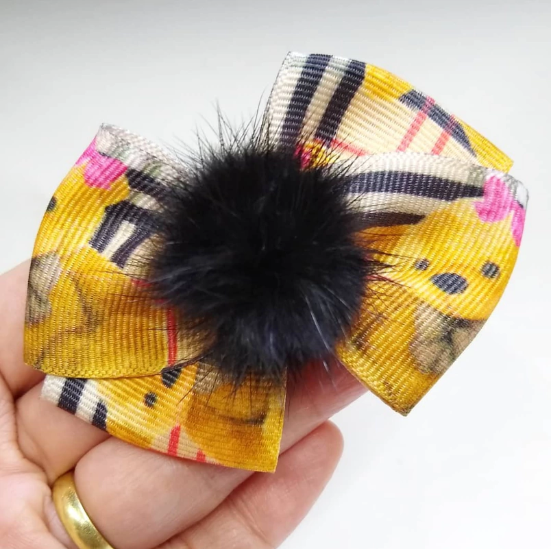 Laço em fita de gorgurão com estampa inspirada na grife.