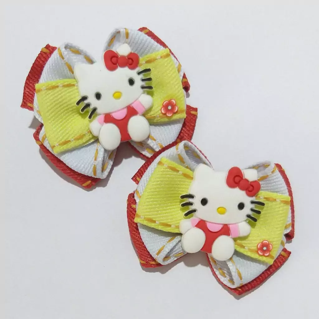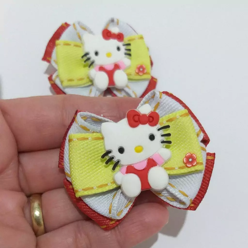 Aplique formato de gatinha no centro do laço.