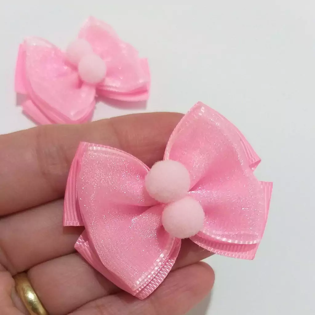 Par de laços em fita de gorgorão e organza cor rosa claro.