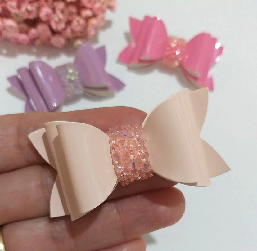 Tira de pedrinhas no centro do laço.