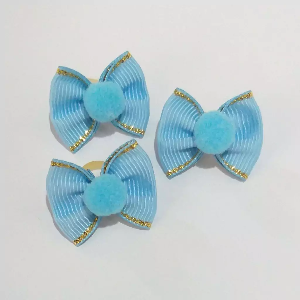 Trio de laços em fita gorgurão azul claro com borda dourada.